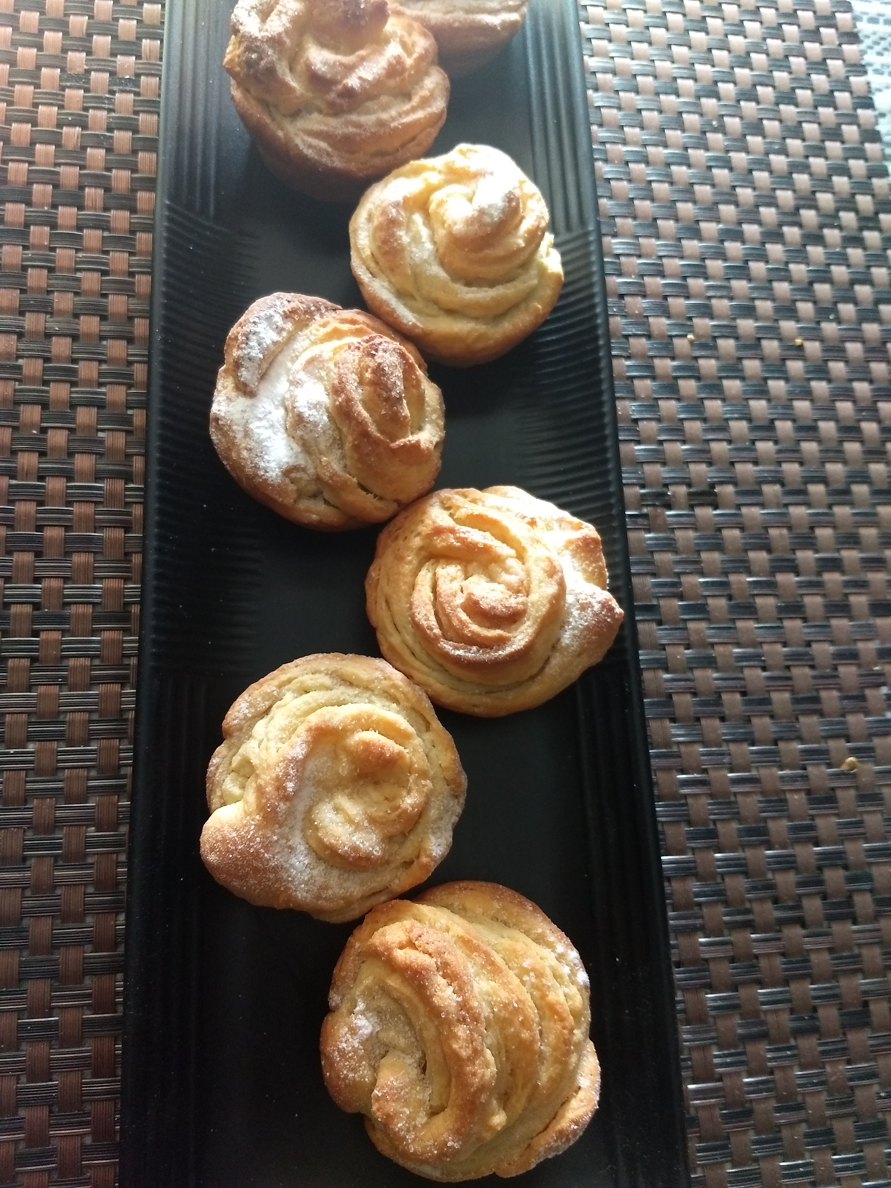 A cruffin is a hybrid between a croissant, a French pastry, and a muffin. The pastry is made using yeast and proving the dough till it doubles and then the laminated dough is baked in a muffin mould. The cruffin is then filled with a variety of creams, jams, creme or curds, and then garnished. It can also be simply dusted with icing sugar. This was also made for a baking contest. Its is very mildly sweet and not as buttery or loaded with fats unlike a croissant. Ideal with a cup of tea or coffee 🙂 So, what are you waiting for? Get into your kitchen, grab your apron and start baking. Enjoy…