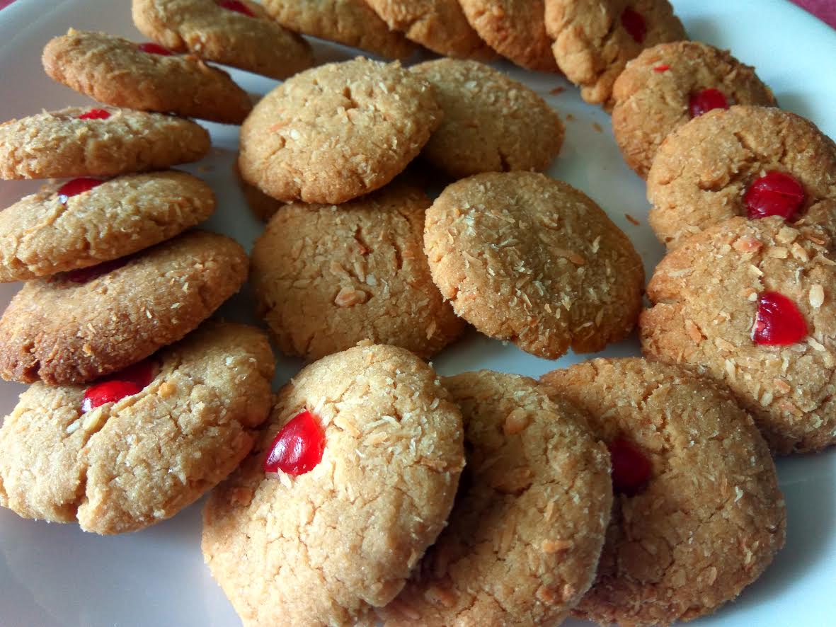 Coconut cookies and that too home made with whole wheat flour!! Doesn’t that sound interesting and delicious? It is quite crunchy and healthy too. Here is a simple yet tasty recipe….