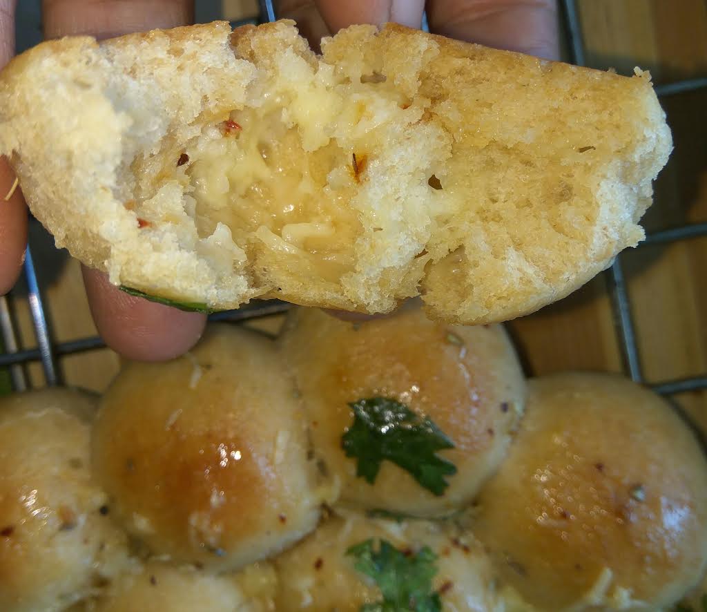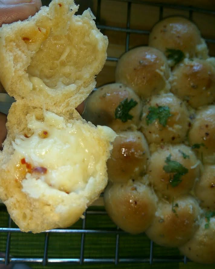 A simple and easy to make cheesy balls recipe, which is ideal for your kid’s tiffin box or for that small choti-choti bhook. No many ingredients, no maida makes it ideal for a cheesy indulgence. I am giving small measurements to make it easier for newbies to try out. Actually, the recipe was made from the left over dough of an earlier recipe of whole wheat footlong bread. Vary the stuffing and use your creativity to make out new and interesting stuffs. If you do not have milk powder, worry not. Simply omit it. You can add fresh cream or malai if you wish to. Make it entirely with whole wheat flour or a combination of wwf and apf (maida) or simply maida. The key lies in kneading it well, using a good quality yeast and your perseverance to bake a good bread. Just try and keep experimenting. Its not about a recipe… all recipes are more or less same. Your understanding of the science behind bread baking is more important. Read a lot about bread baking, invest some time on it and then start baking. Good luck.